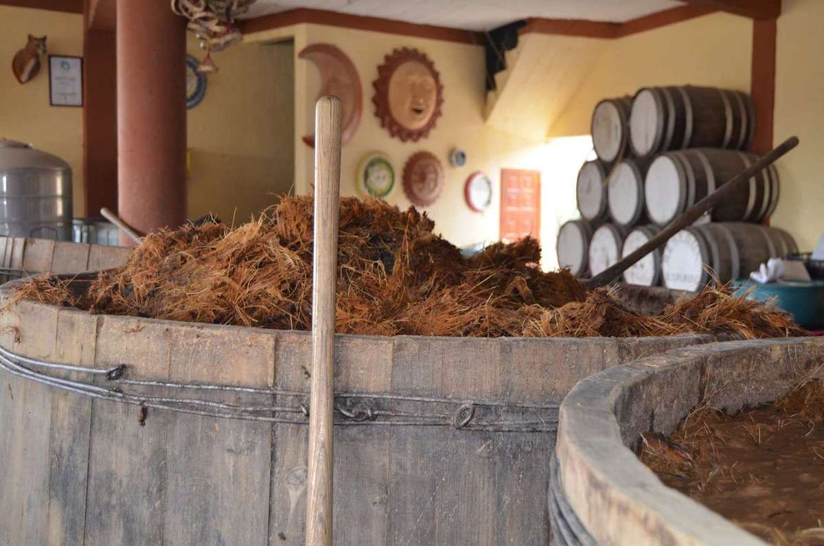Les agaves broyées sont ensuite mélangées à de l'eau chaude et mises à fermenter pendant 6 à 7 jours dans de grands fûts en pin.