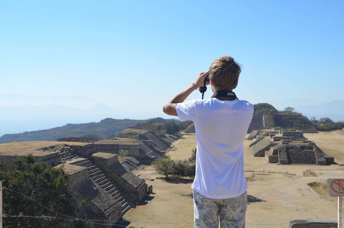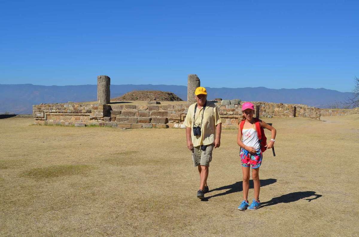 Après une nuit sur les hauteurs du village de La Cañada, nous visitons au petit matin le site archéologique de Monte Albán, niché à 2000 m au sommet d'une colline dominant toute la vallée d' Oaxaca.