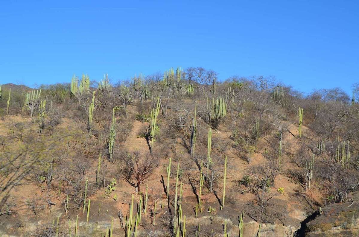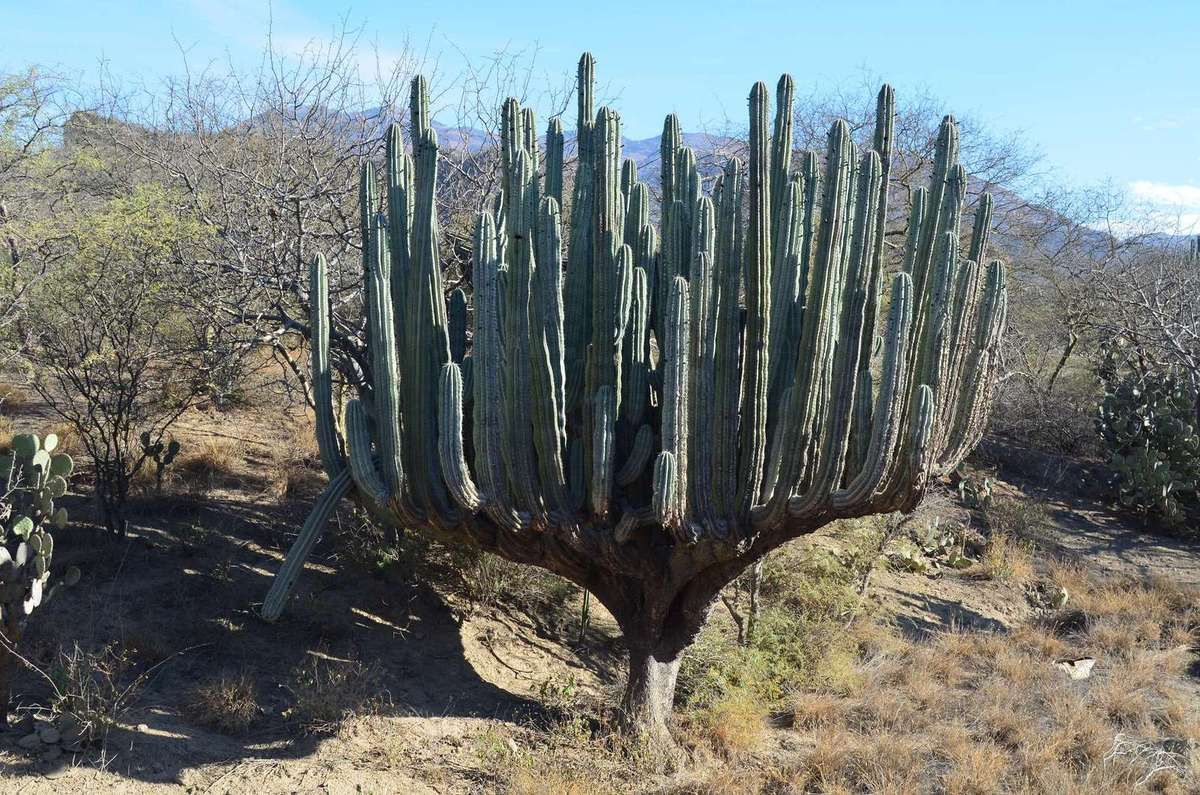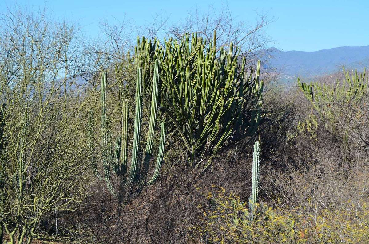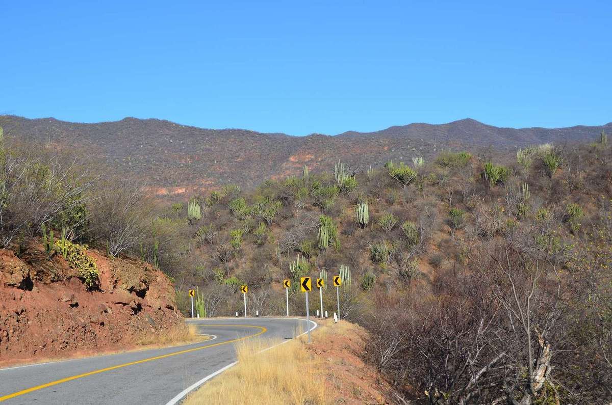 A partir de Tehuantepec en montant vers Oaxaca, une route sinueuse traverse de beaux paysages de forêts sèches. Ici, les arbres perdent leurs feuilles en saison sèche.