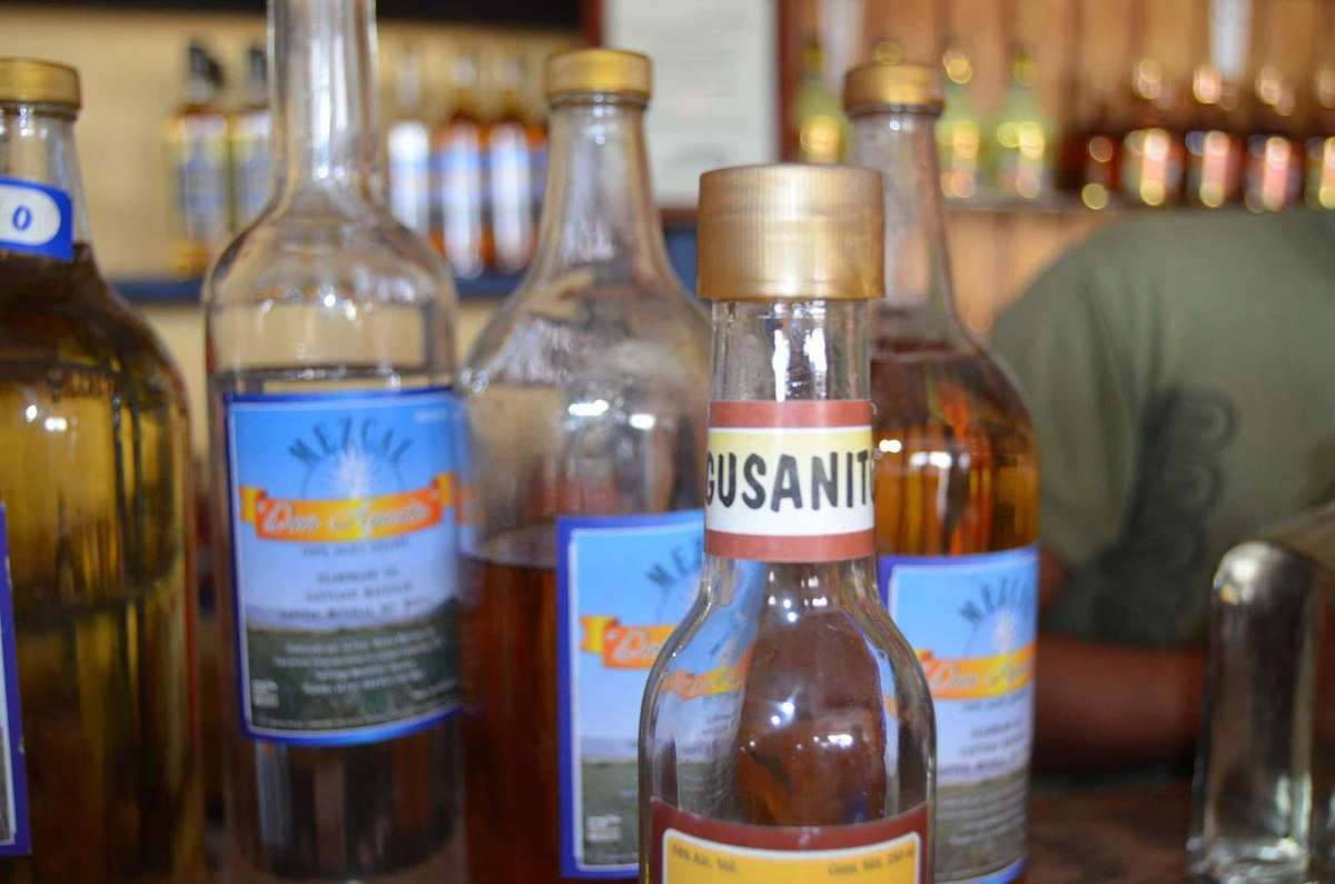 Dans la bouteille du mezcal d'un an, on peut mettre un gusanito, un ver rouge qui vit habituellement dans l'agave, et qui modifie le goût du mezcal.