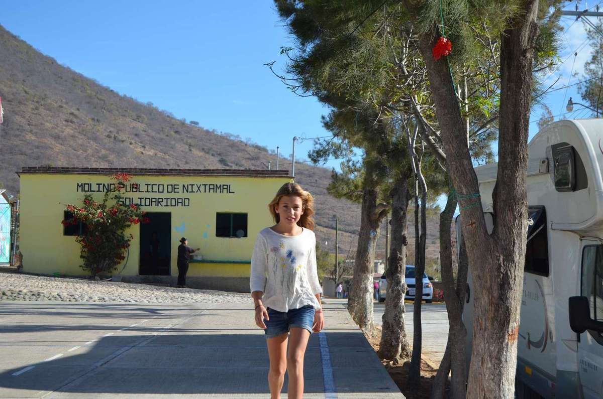 Nous passons la nuit dans le village avec, comme d'habitude, église, terrain de basket, moulin à tortillas, centre de santé...et terrain de basket où Papi et les enfants enchaînent les parties.