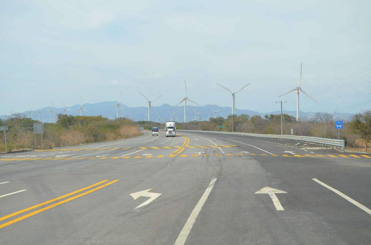 Nous poursuivons vers l'ouest et entrons dans la région d'Oaxaca : des paysages sans grand charme, une région venteuse avec de gigantesques parcs éoliens.